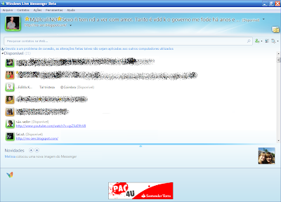 Um dos recursos mais fixes na nova versão do Windows Live Messenger 2009 é a lista de Novidades. Localizada no rodapé da janela, todas as alterações que os teus amigos realizarem, como mudança de foto e troca de frases nas mensagens pessoais são instantaneamente apresentadas.